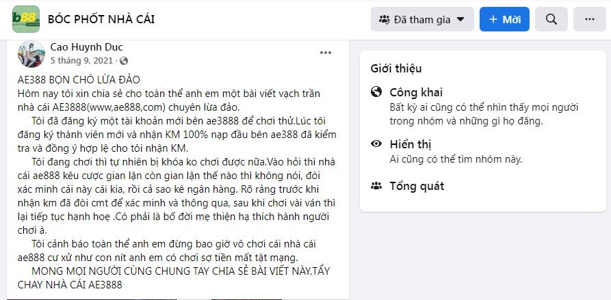 Các phốt nhà cái AE888 lừa đảo của thành viên khác