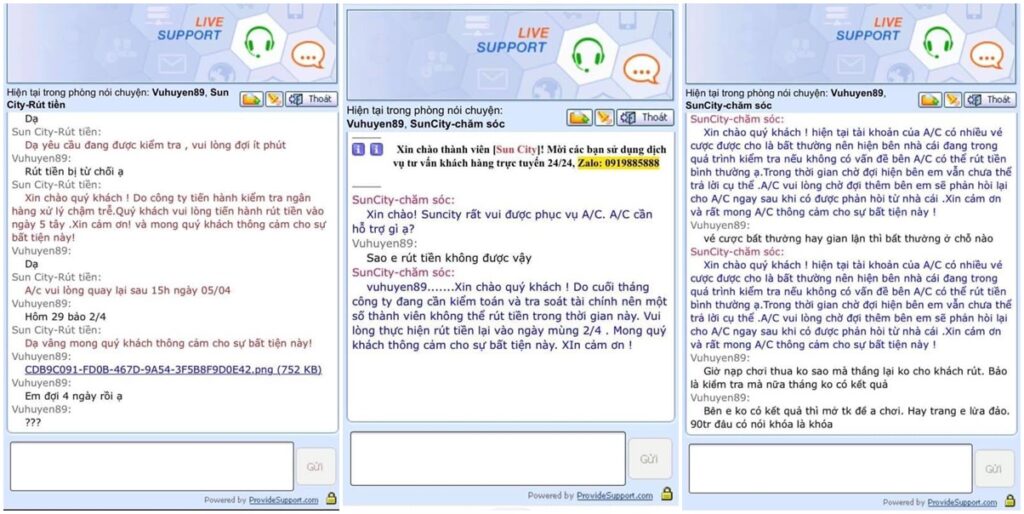 Thắc mắc tới bộ phận hỗ trợ người chơi của Suncity, họ viện ra rất nhiều lý do: