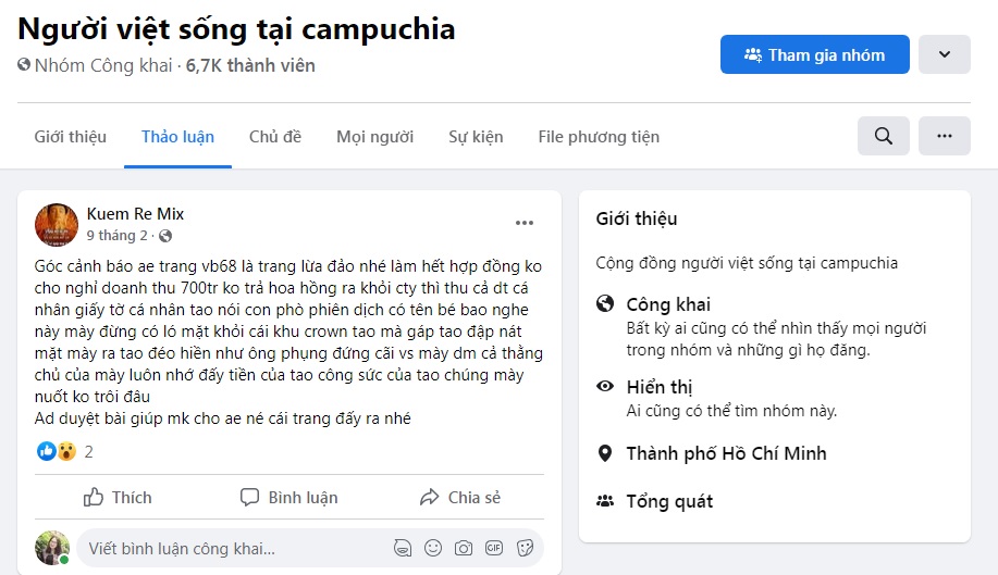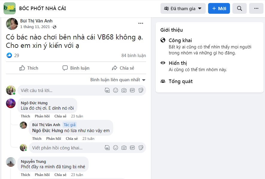 Các bài viết của người chơi phốt VB68 lừa đảo