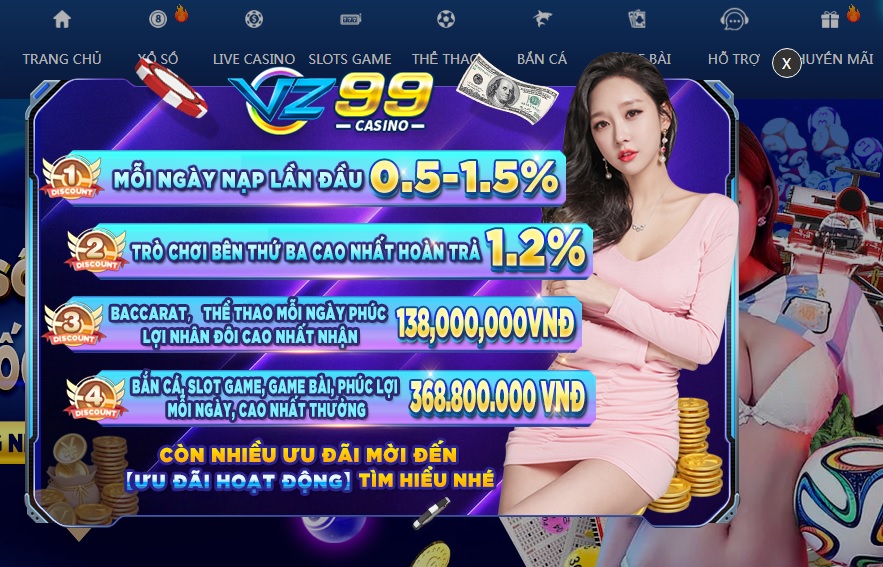 VZ99 có những khuyến mãi rất lớn để dụ thành viên nạp tiền